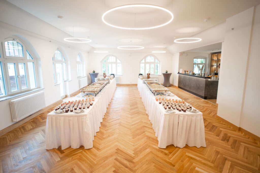 Der direkt an den Ballsaal angrenzende kleine Saal Grasmücke bietet vielfältige Nutzungsmöglichkeiten und kann für verschiedene Anlässe wie Schulungen, Workshops oder private Feiern gemietet werden.